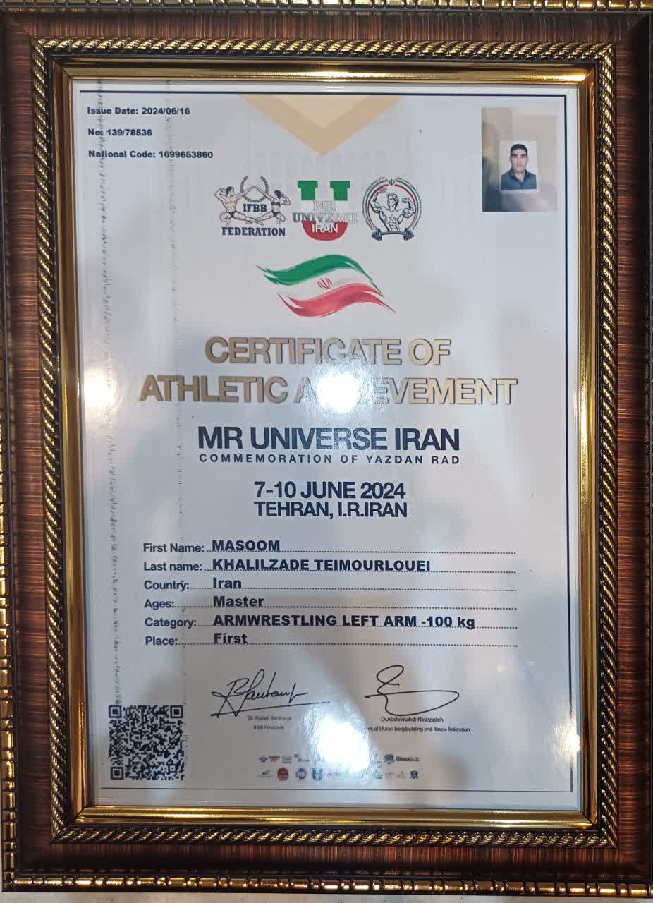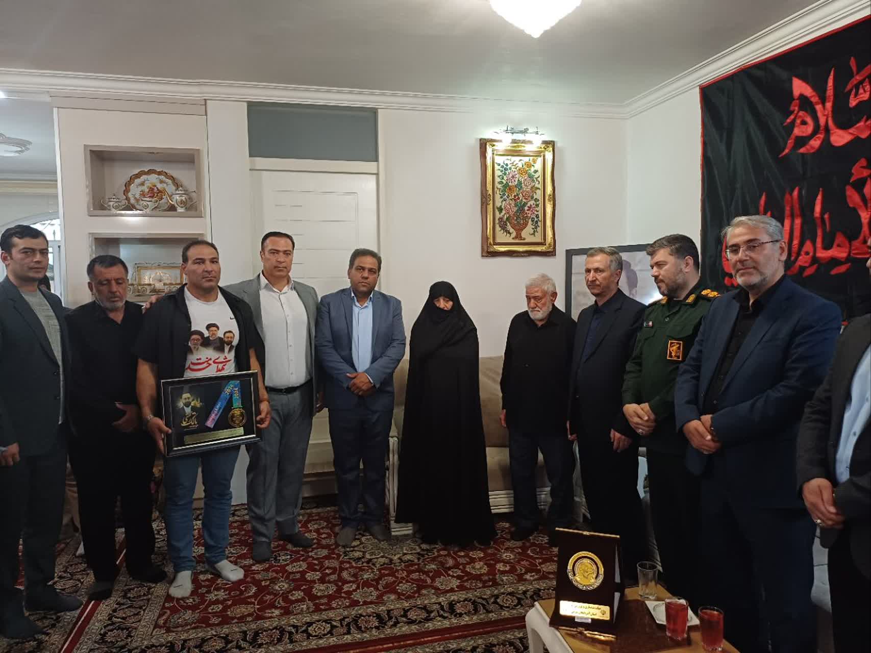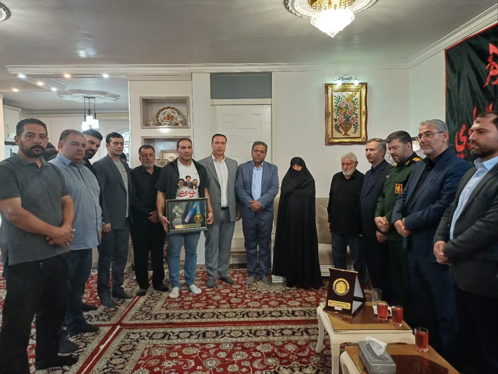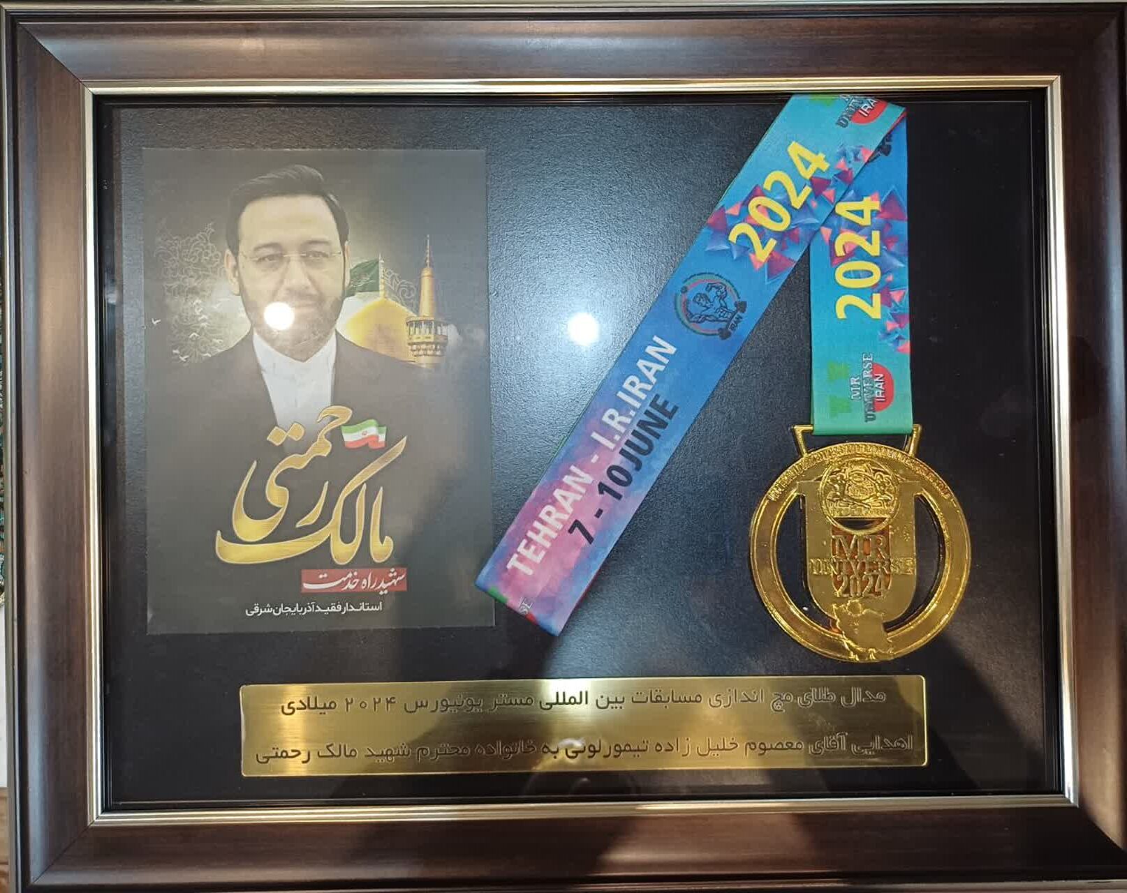 قهرمان مسابقات بین المللی مستر یونیورس مدال طلای خود را به خانواده شهید مالک رحمتی اهدا کرد .