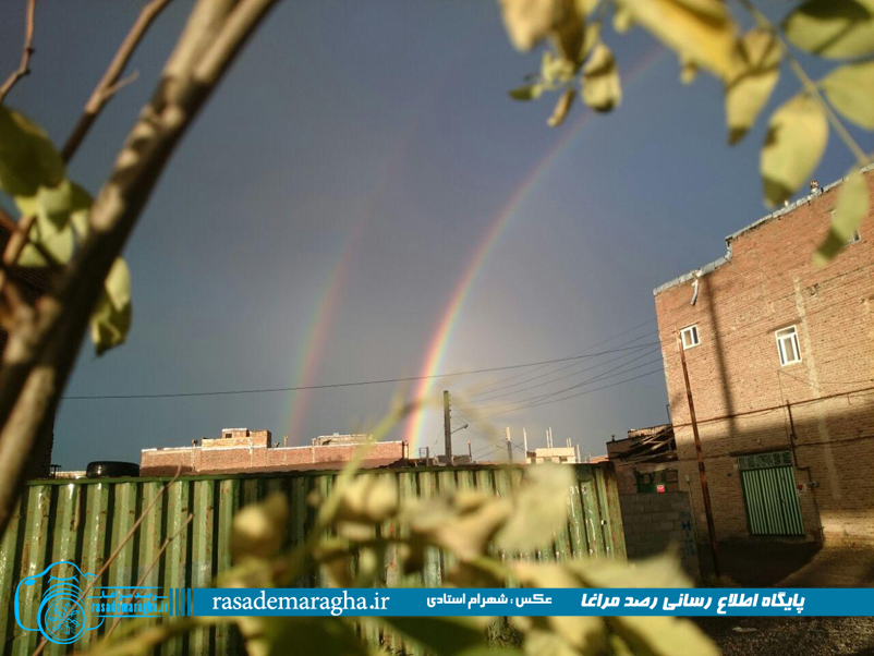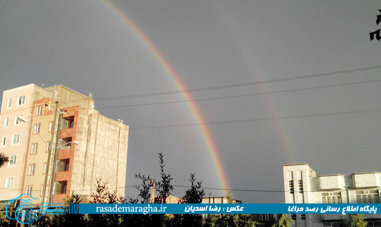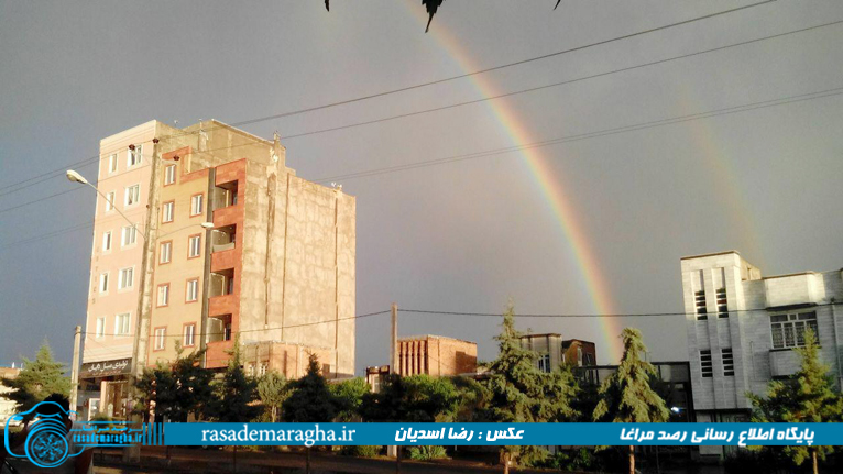 به گزارش رصدمراغا ؛ بارش باران در بعد از ظهر امروز در مراغه و تابش خورشید باعث به وجود آمدن رنگین کمان شد و مناظر زیبایی را در شهر ایجاد کرد .