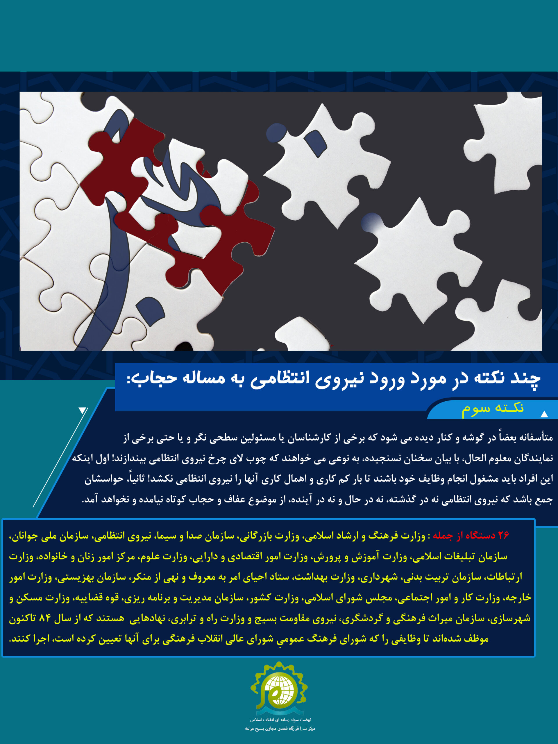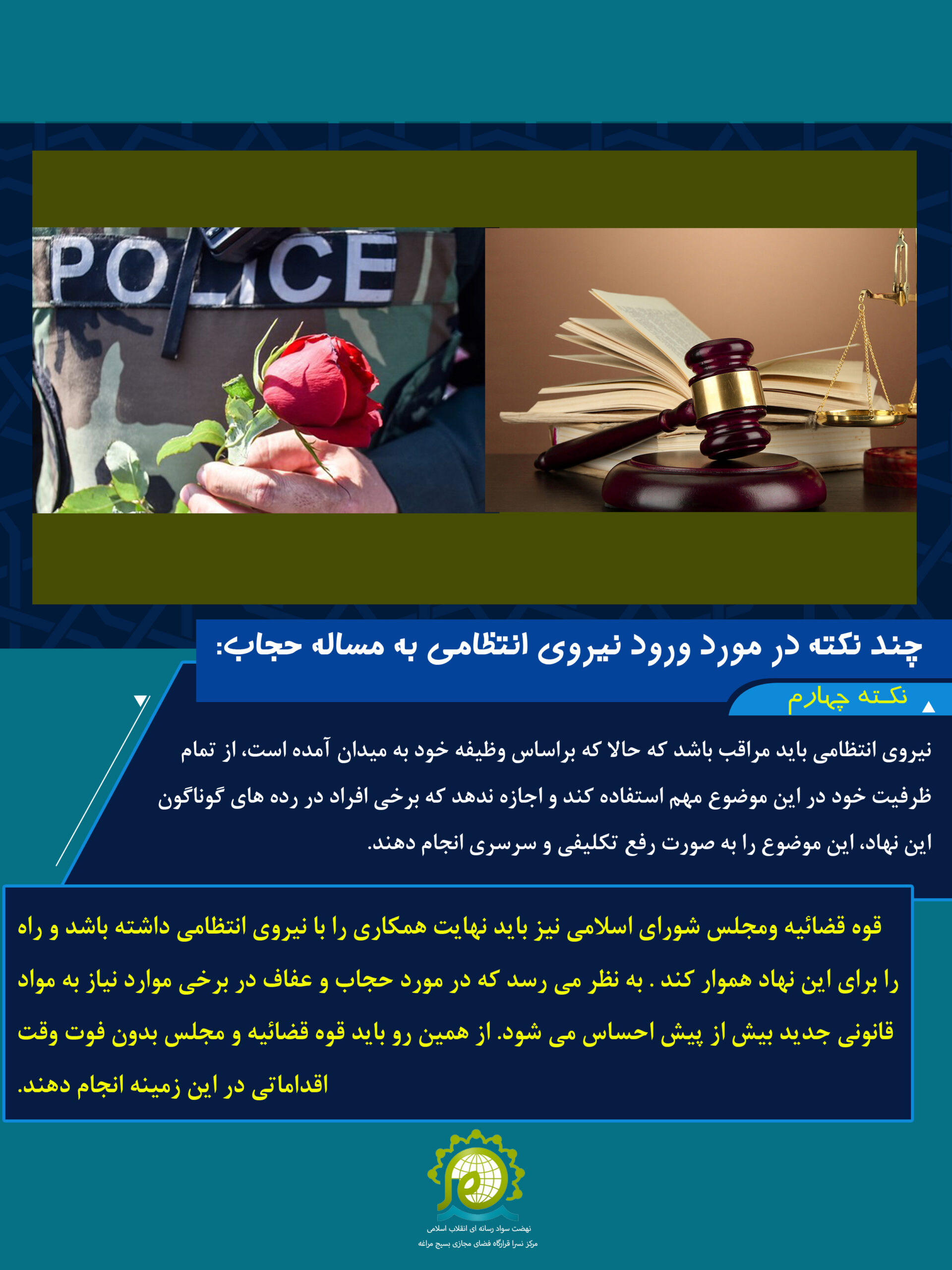 انتشار مجموعه عکس نوشته با عنوان ورود نیروی انتظامی به مساله حجاب از سوی مرکز نسرا قرارگاه فضای مجازی بسیج مراغه