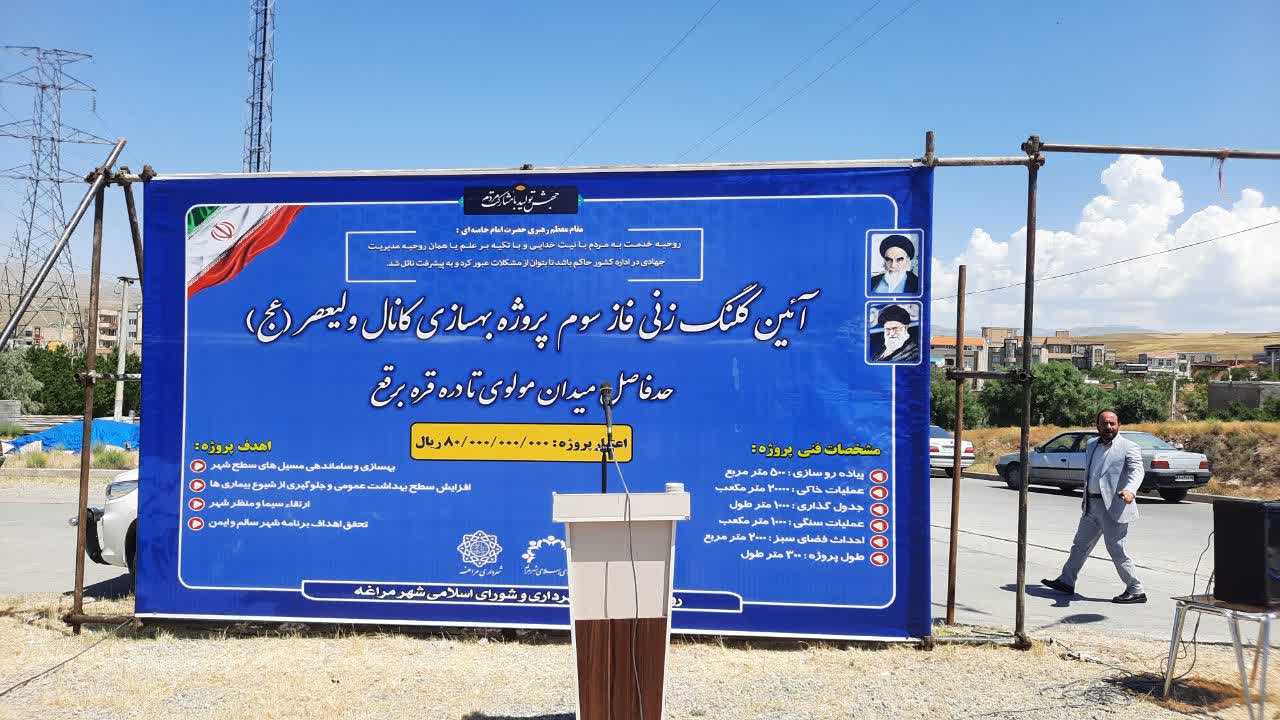 پروژه بهسازی فاز سوم کانال ولیعصر حد فاصل میدان مولوی تا دره قره برقع در مراغه کلنگ زنی شد .